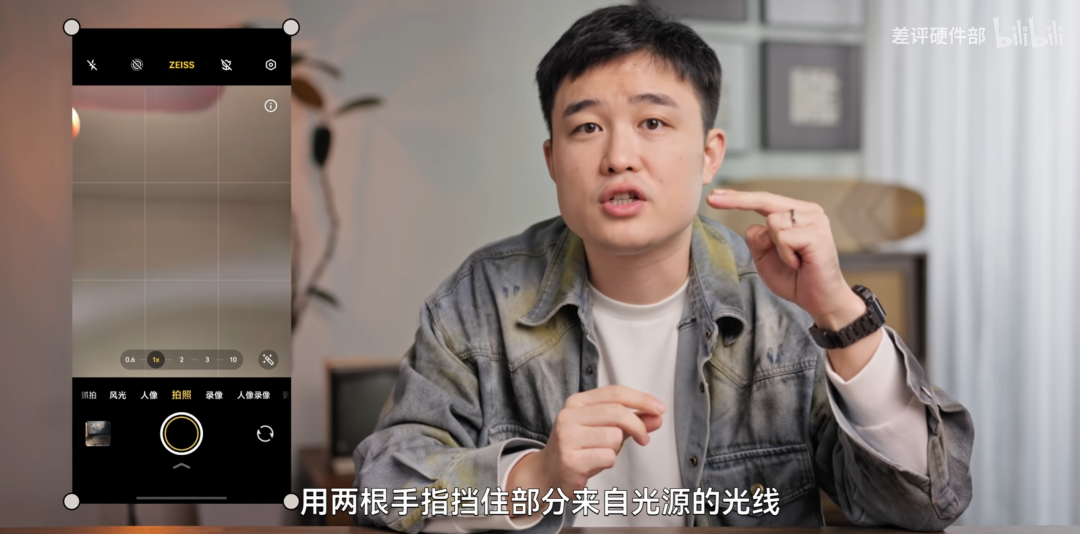 我们也在拍照的时候测试了一下, 在 X200 的相机模组旁边,用两根手指挡住部分来自光源的光线,炫光就消失了。
