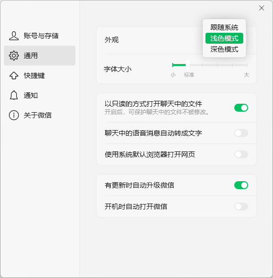 同时,在微信通用设置中,新增“字体大小”,拖动即可改变微信界面的字号大小。
