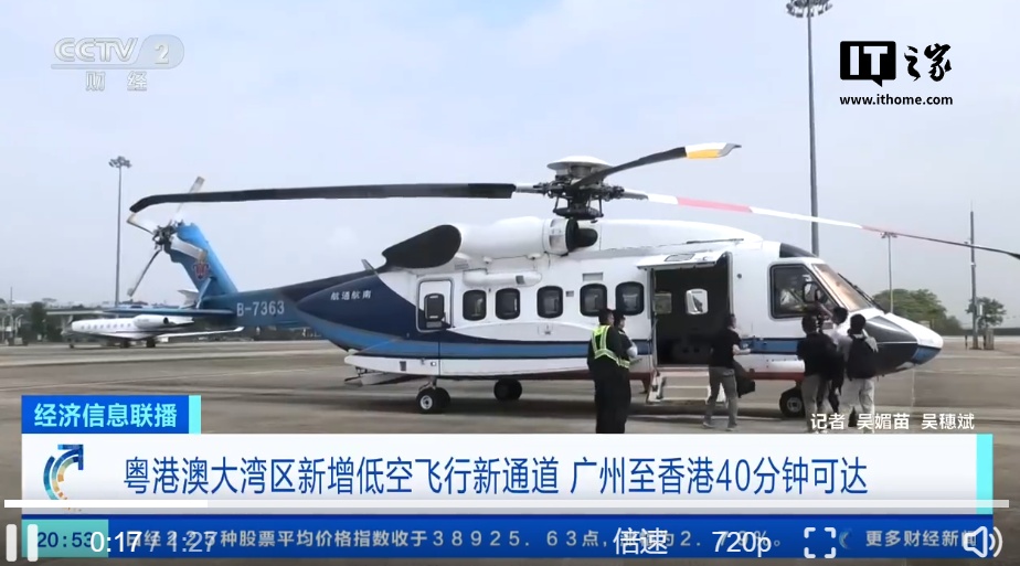 IT之家注意到,10 月 31 日,由深圳⇌广州城区⇌白云机场低空飞行航线成功首飞。据央视新闻报道,原先从深圳大中华到广州海心沙高峰时期地面交通超 120 分钟,从广州海心沙到白云机场地面交通时间超 50 分钟。使用此次开通的联程接驳服务,从深圳大中华到广州海心沙只需 30 分钟空中飞行,安检 2 分钟;从广州海心沙到白云机场只需 18 分钟空中飞行,安检 2 分钟。