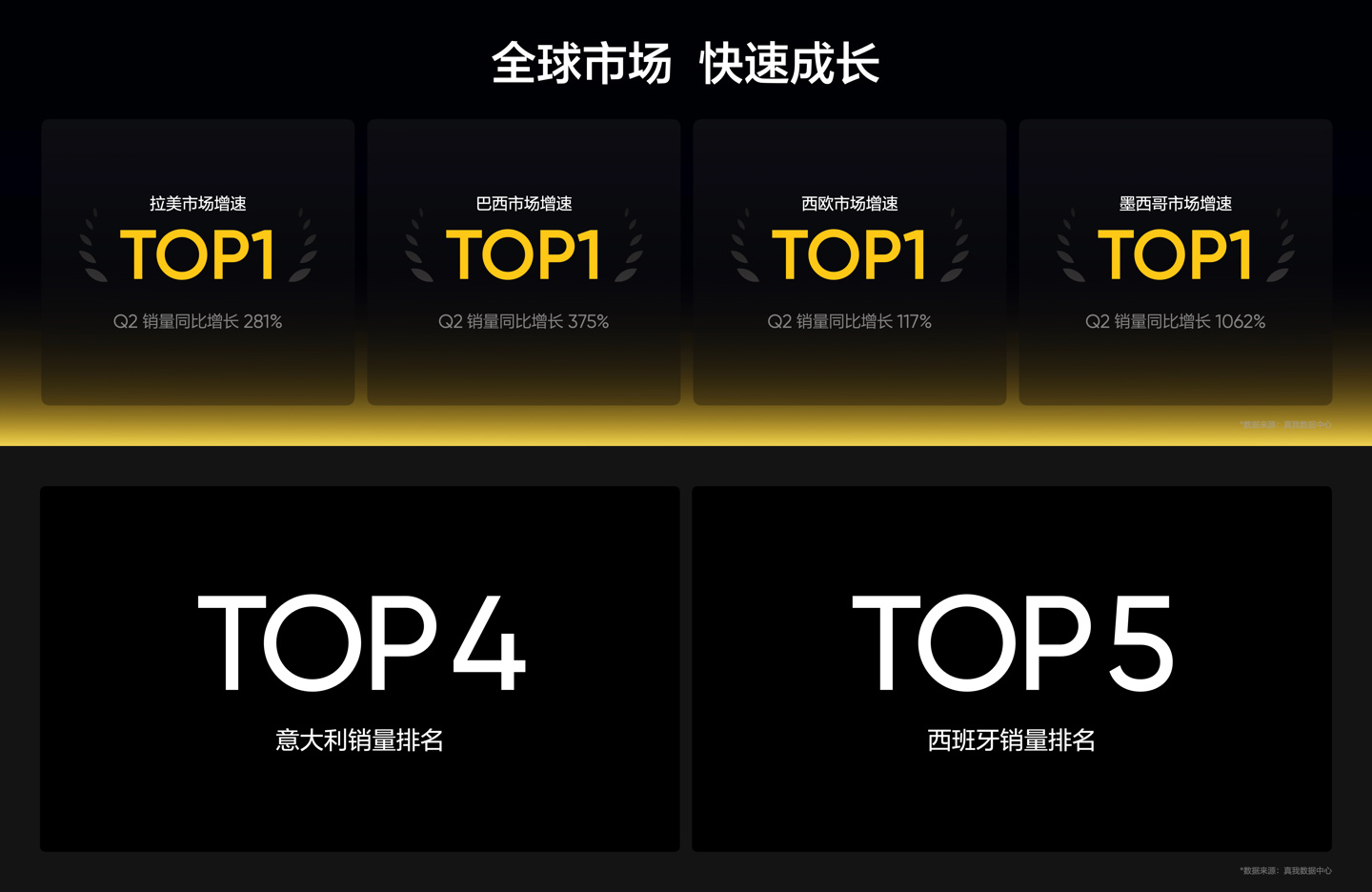 另外,realme 真我手机意大利销量排名 TOP4、西班牙销量排名 TOP5。
