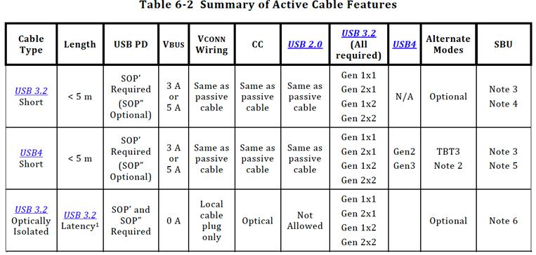 不同协议的主动线和被动线所支持的长度和最高速度并不相同。举个例子,USB4 的被动线缆可以在长度小于 2m 时提供的最高传输速度为 20Gbps,而主动线可以在长度小于 5m 时提供这个速度。