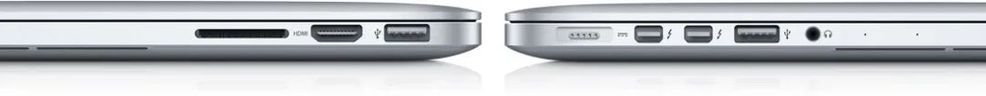 在 2011 年公布的第一代雷电标准中,其使用的物理接口是 Apple 在 2008 年推出的 miniDP 接口,也就是 2016 年之前 MacBook Pro 机身上那两个标志性的倒梯形接口: