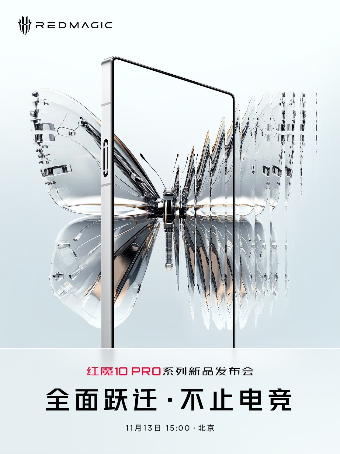 据IT之家昨日报道,红魔游戏手机官宣红魔 10 Pro 系列定档 11 月 13 日 15:00 在北京发布,号称“全面跃迁,不止电竞”。目前该系列手机正面外观形象已曝光: