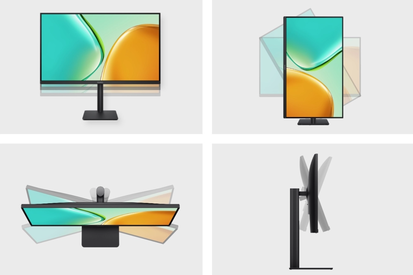 该显示器支持 100mm x 100mm 标准 VESA 壁挂孔,配备 HDMI、DP 接口,可选旋转升降支架版。
