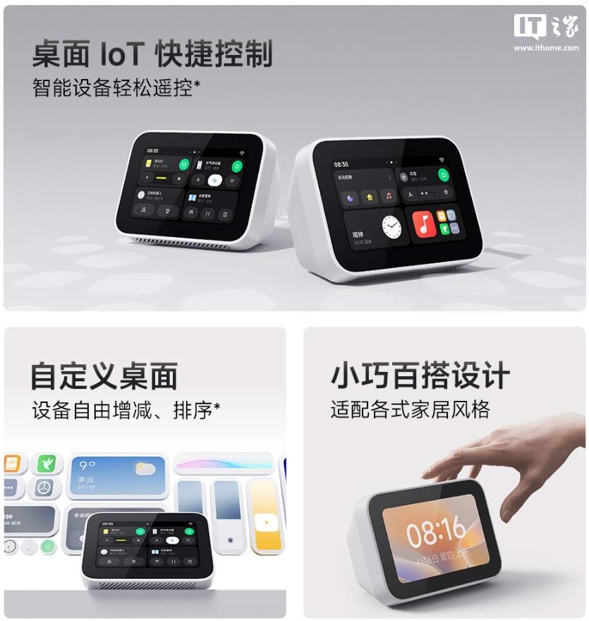 该产品搭载小米澎湃 OS,支持语音、触控操作各种米家生态链产品,还可 OTA 升级小爱同学大模型、远程控车小米 SU7(IT之家注:2024 年 12 月下旬陆续升级)。