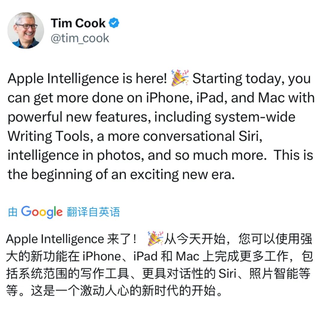 库克发文激动地表示,“这将是一个新时代的开始”。