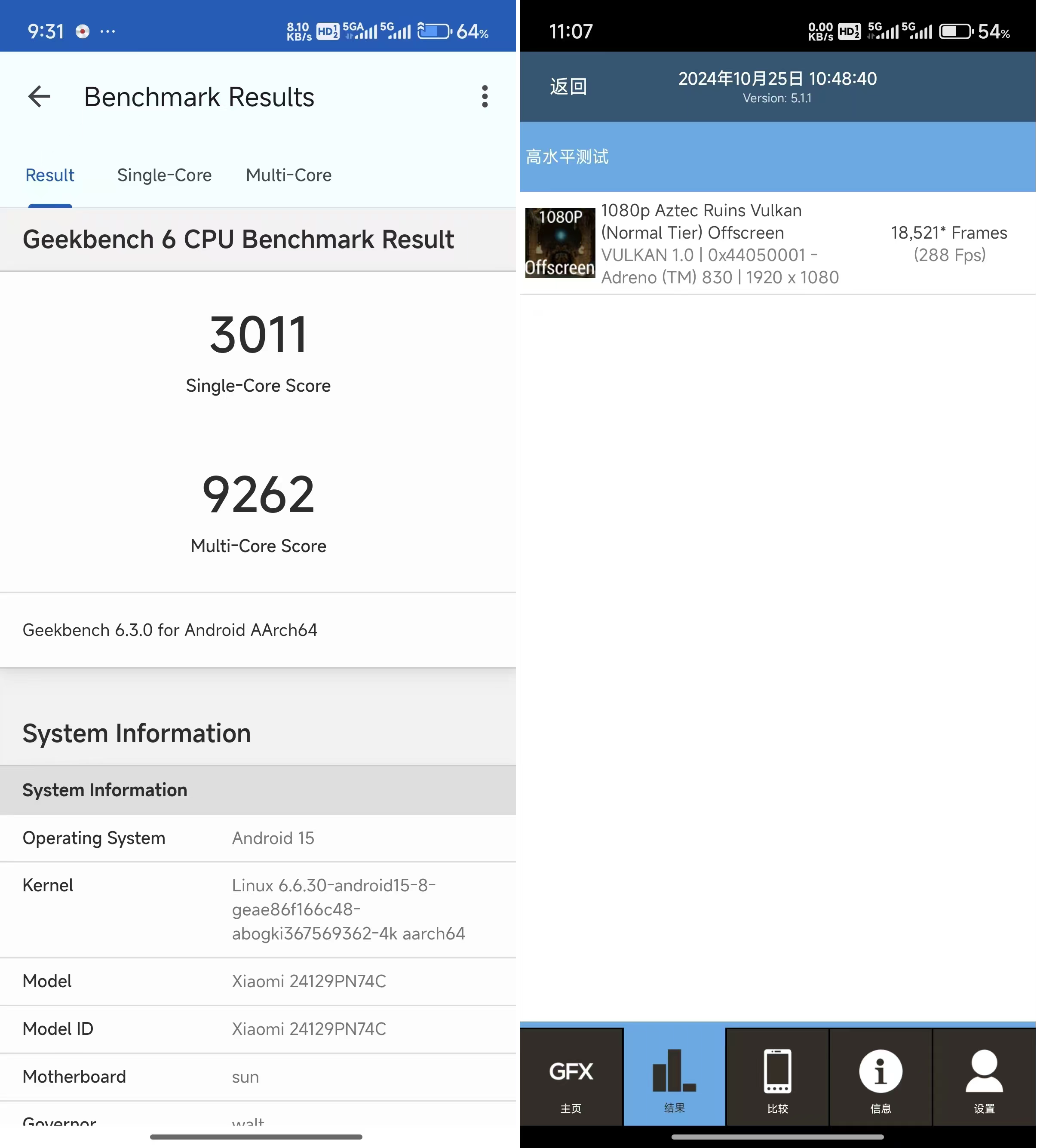至于这颗芯片有多猛呢?或许我们可以参考一下雷科技实测小米15的跑分数据:GeekBench 6单核跑分3011分、多核跑分9262分,已经到了几近碾压苹果A18 Pro的程度。