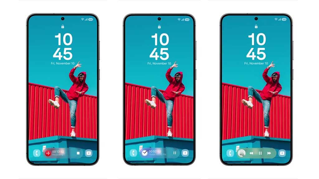 三星 One UI 7 引入 Compact Live App Activities 位于电话和相机快捷方式之间,目前曝光的图片仅演示了 3 款应用,IT之家附上相关介绍如下: