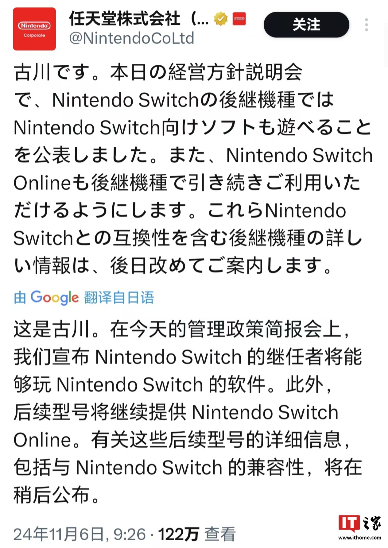 任天堂官方表示,关于 NS 后继机型的详细信息及与 Switch 的兼容情况将在稍后公布。