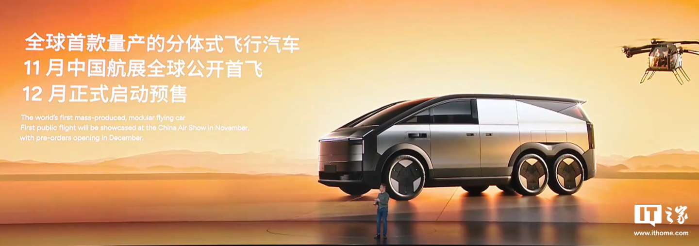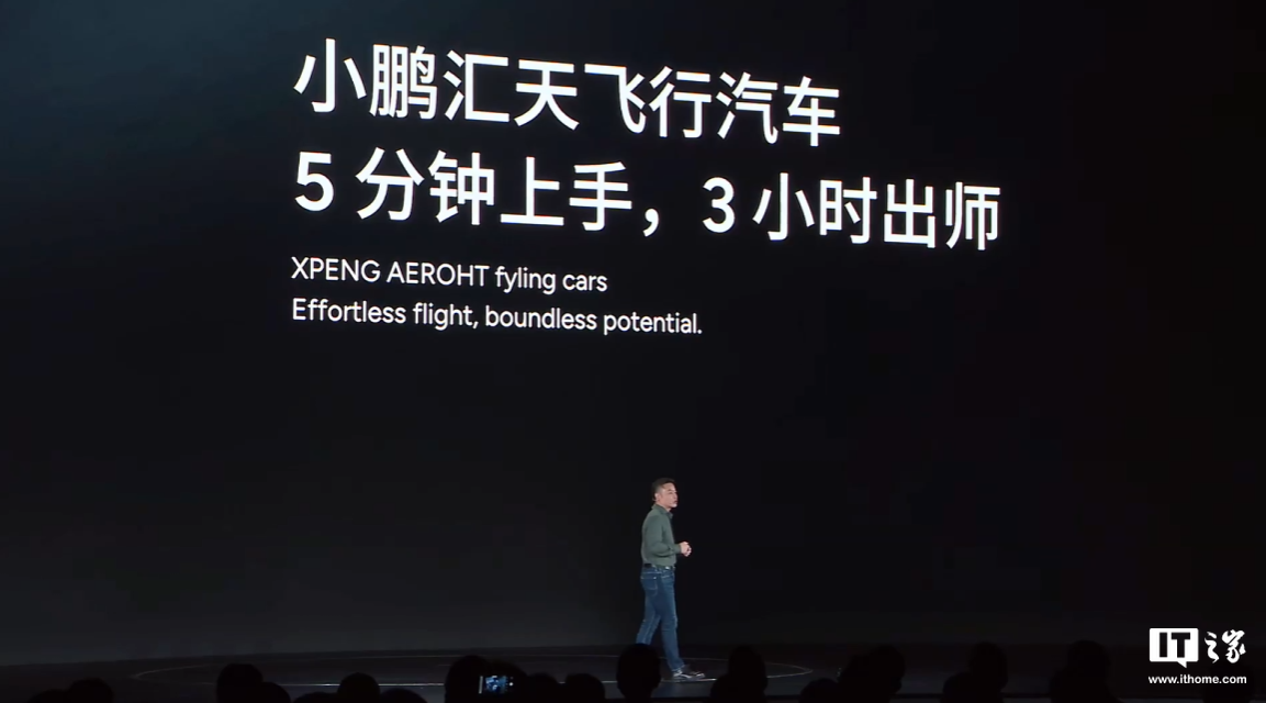 IT之家从发布会获悉,小鹏汇天飞行汽车飞行器已经完成适航合格证申请受理,2026 年有望实现电子化、无人化一键报备起飞。这款飞行汽车将在 11 月中国航展全球公开首飞,12 月正式启动预售。在最后交付前,何小鹏要求小鹏汇天高管团队累计飞行里程必须超过 5000 公里。