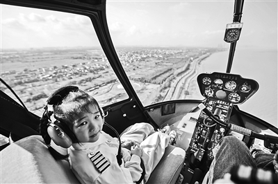 图为11月5日,小游客乘坐米旗通航直升机飞行基地的直升机在空中饱览太湖南岸美景。新华社记者 徐昱 摄