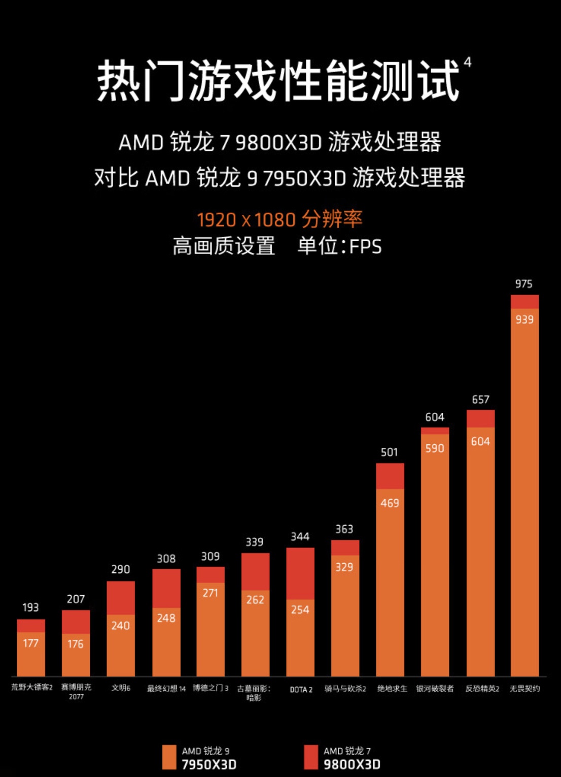 AMD 宣称,结合“Zen 5”处理器架构,AMD 3D V-Cache 技术可实现游戏平均帧数相比上代 X3D 产品提升达 8%,在部分游戏中的提升更是达到 10% 以上。