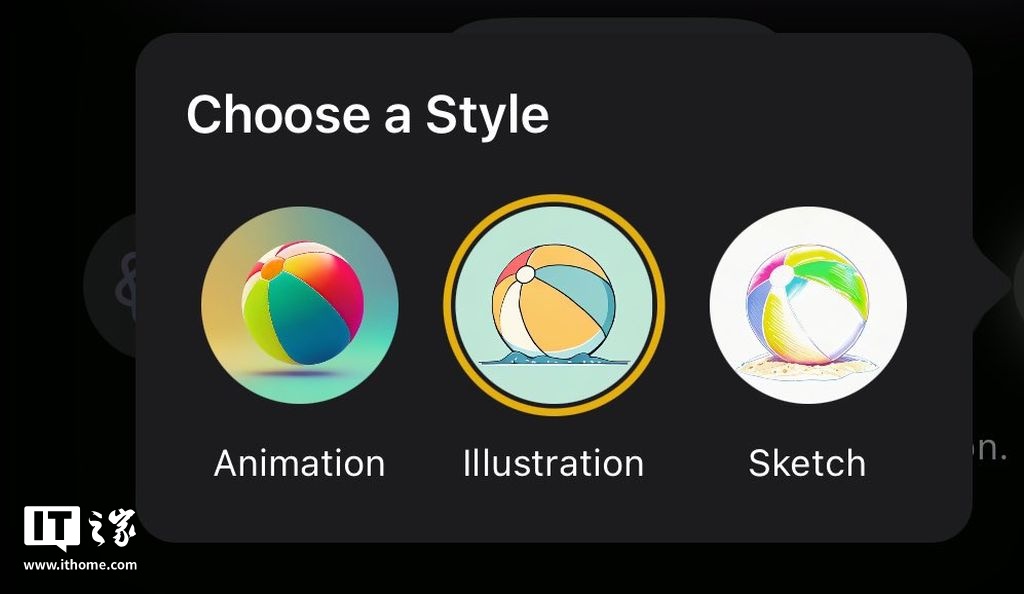 IT之家注:苹果公司在今年 6 月召开的 WWDC 开发者大会上,宣布将为 Image Playground 带来三种文生图风格:动画(animation)、插图(illustration)和素描(sketch)。