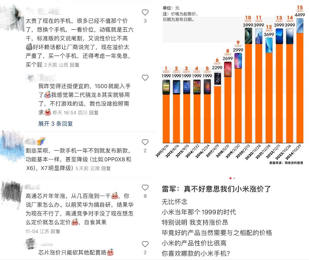 雷军此前对小米15定价的回应