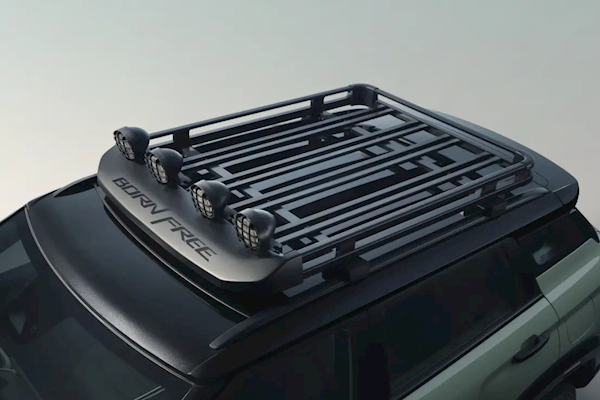 座椅采用皮质、牛仔、仿麂皮面料拼搭,主副驾座椅靠背位置压印Born Free牛仔标识。