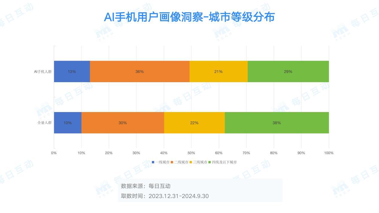 从地域分布来看,每日互动大数据洞察发现目前一二线城市依然是AI手机的主力市场,特征较为明显;AI手机整体暂未显现下沉趋势。