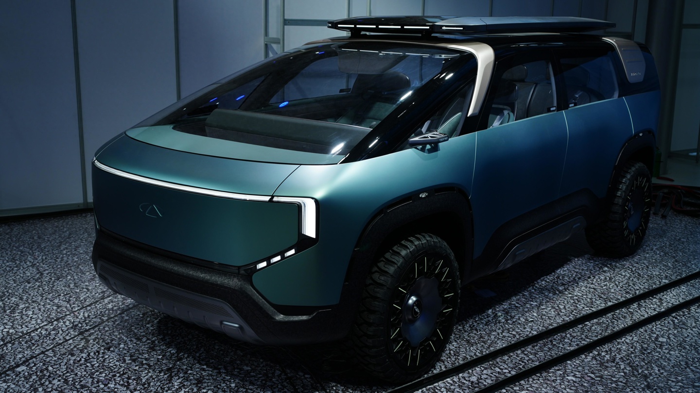 据IT之家了解,奇瑞劲云概念车定位为一款跨界 MPV,整体车身设计方正,同时呈现出一定的越野风格。车头部分,平直的封闭式面板与贯穿式 LED 日间行车灯相结合,下方三点式灯组与厚重的前包围形成“X”形设计。新车还配备了创新的多功能模块化前备厢,车头面板开启后可转换为长凳座位、可变移动厨房、可变烧烤架或存储箱等多种形式。