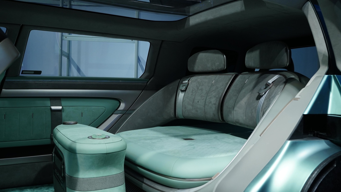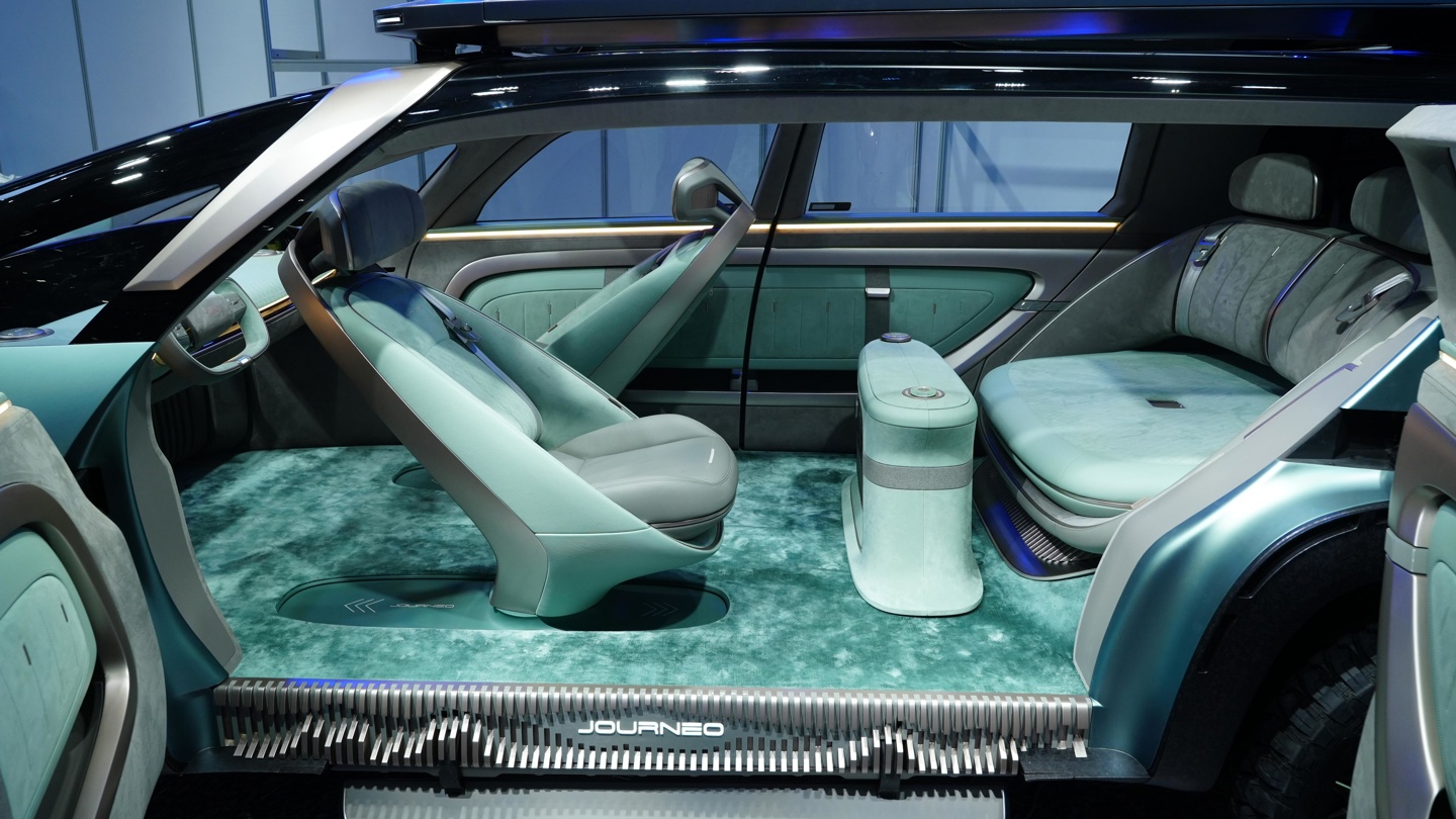在车内布局方面,奇瑞劲云概念车预计采用七座设计,前排座椅支持 180 度旋转,后排岛台和第二排座椅可形成类似“移动客厅”的空间布局。第二排与第三排座椅均可折叠放平,其中第三排座椅还具备魔术收纳功能。