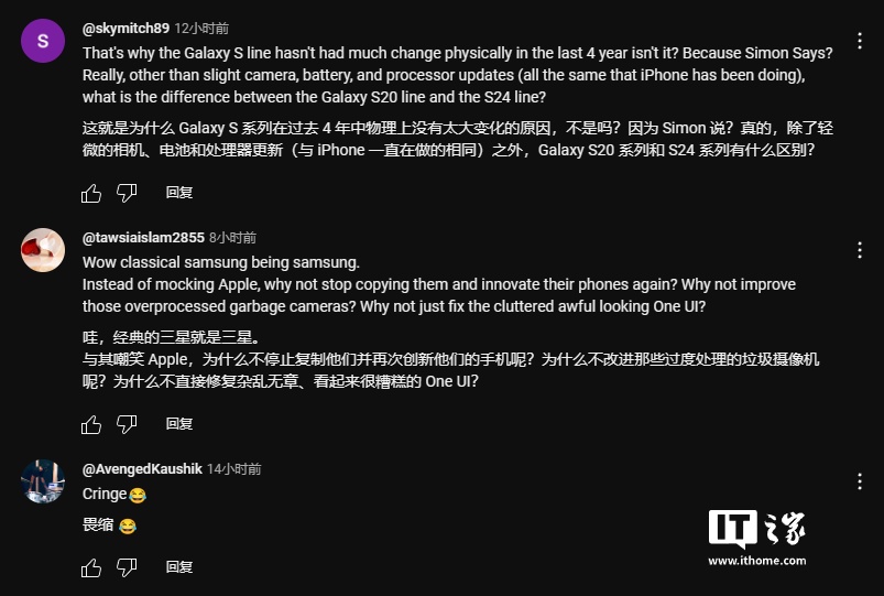 然而IT之家注意到,网友们在评论区指出,三星近年来在手机创新方面并没有取得显著突破,三星应该专注于自身产品的创新,而不是一味地攻击竞争对手。
