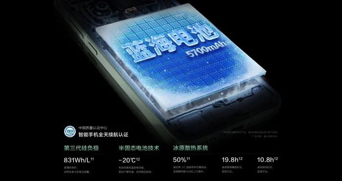 以vivo X200 Pro mini举例,采用硅碳负极电池后,电池容量达到惊人的5700毫安时,这一数字不仅超越了众多传统大屏旗舰手机的电池容量,更是在续航能力上树立了新的标杆。以超大的电池容量和快充技术,为用户提供了更为持久和安心的使用体验。