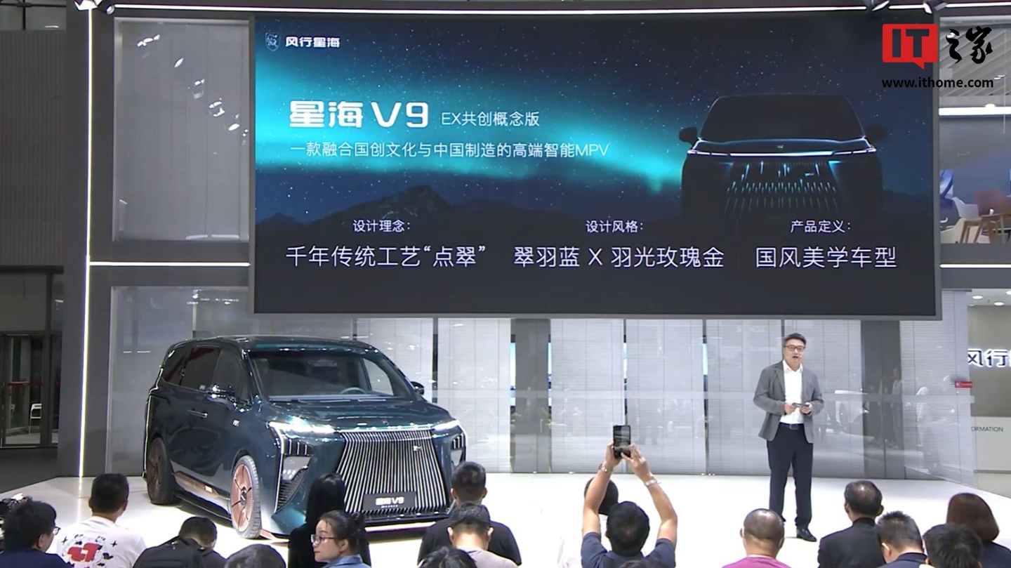 IT之家 11 月 15 日消息,东风风行今日在 2024 广州国际车展上发布了星海 V9 EX 共创概念版大中型插电式混动 MPV。该车型在原版星海 V9 的基础上进行国风主题高定设计,全面提升五感体验。