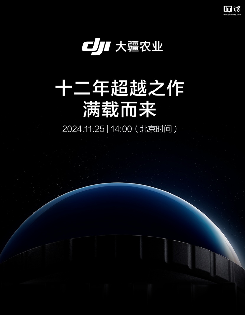 IT之家 11 月 15 日消息,大疆今日官宣,大疆农业 2025 新品发布会定档北京时间 11 月 25 日 14:00,口号为“十二年超越之作,满载而来”。