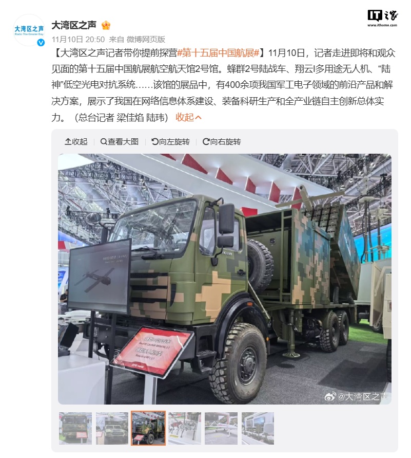 IT之家 11 月 15 日消息,据央视新闻今日报道,2024 中国航展上,中国蜂群 2 号陆战车首次亮相。