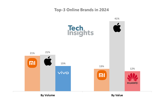 按销量计算,vivo超越荣耀,位居第三,按销售额计,华为保持第三位,拥有中国厂商中最高的ASP。