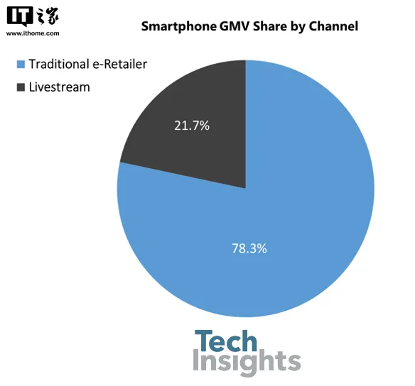 从渠道来看,京东在智能手机销量和销售额上仍是最大的平台,其次是天猫(包括淘宝)和拼多多。直播带货(抖音、快手、小红书等)继续同比扩张,按 GMV 计算,占据了约 22% 的市场份额。不过由于不同平台启动日期不尽相同,因此该机构提醒此处追踪数据仅供参考。