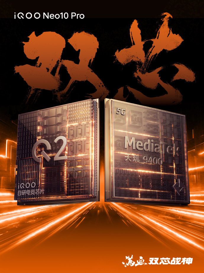 IT之家 11 月 17 日消息,vivo 品牌副总裁贾净东今日发文对 iQOO Neo10 系列手机进行了预热,Pro 版确认搭载天玑 9400 处理器和自研电竞芯片 Q2。