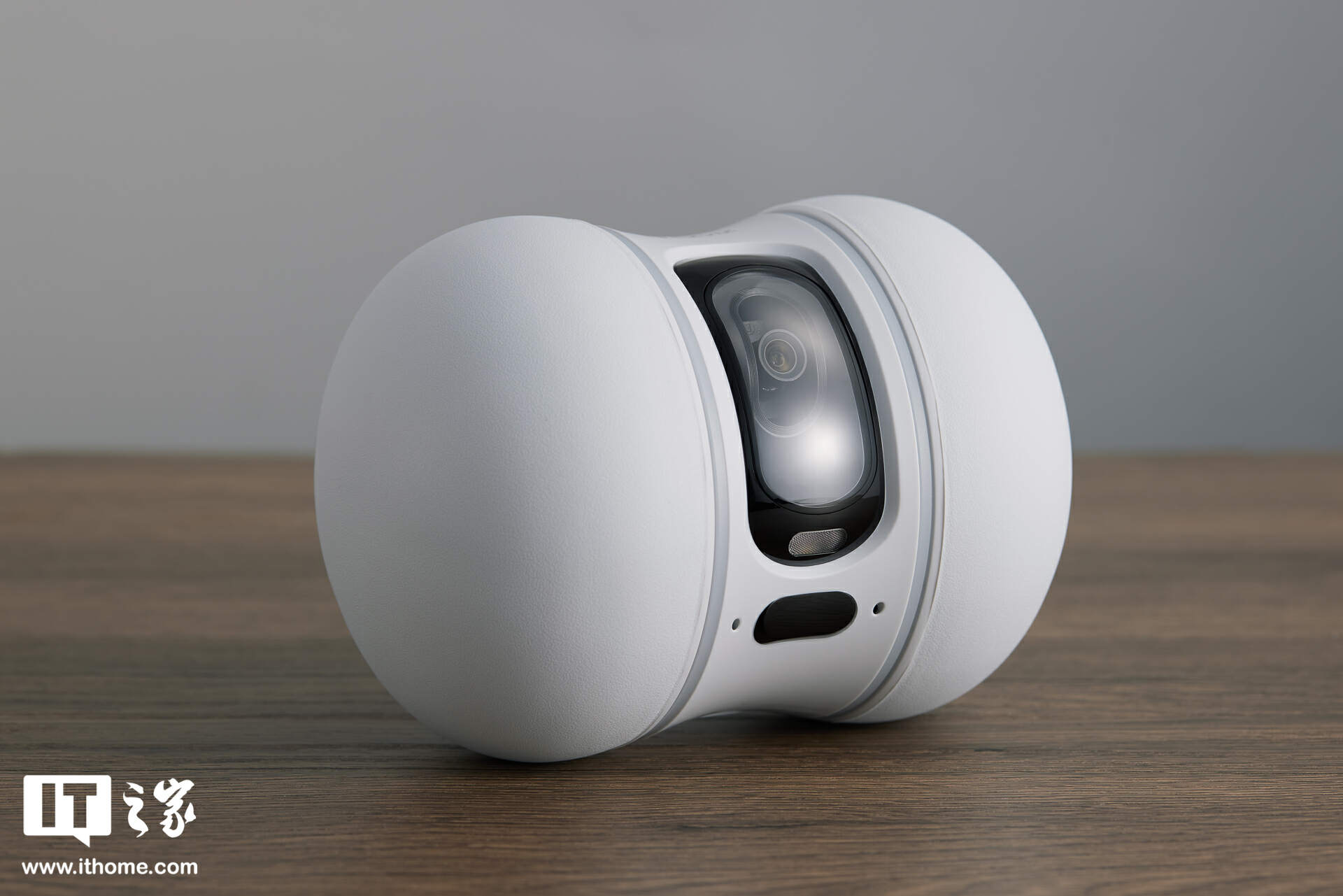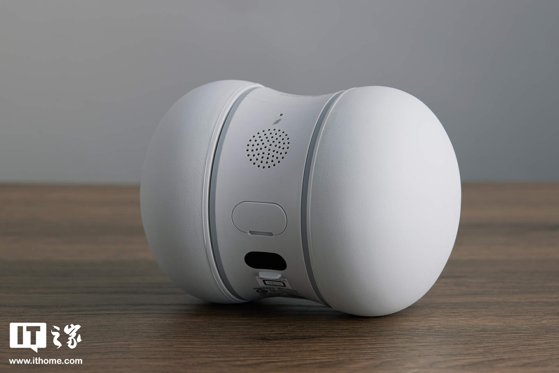在细节方面,轮子的内侧各配备了一条 LED 灯带,营造出非常科幻的光环效果。同时,摄像头下方还装备了 ToF 传感器和激光发射器,前者用于智能避障,后者则能发射激光与宠物互动。