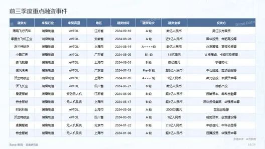 整体来看,前三季度低空经济赛道的投早投小的特点非常突出,并且投资轮次较去年同期有所前移,符合风口赛道前期阶段的特征。