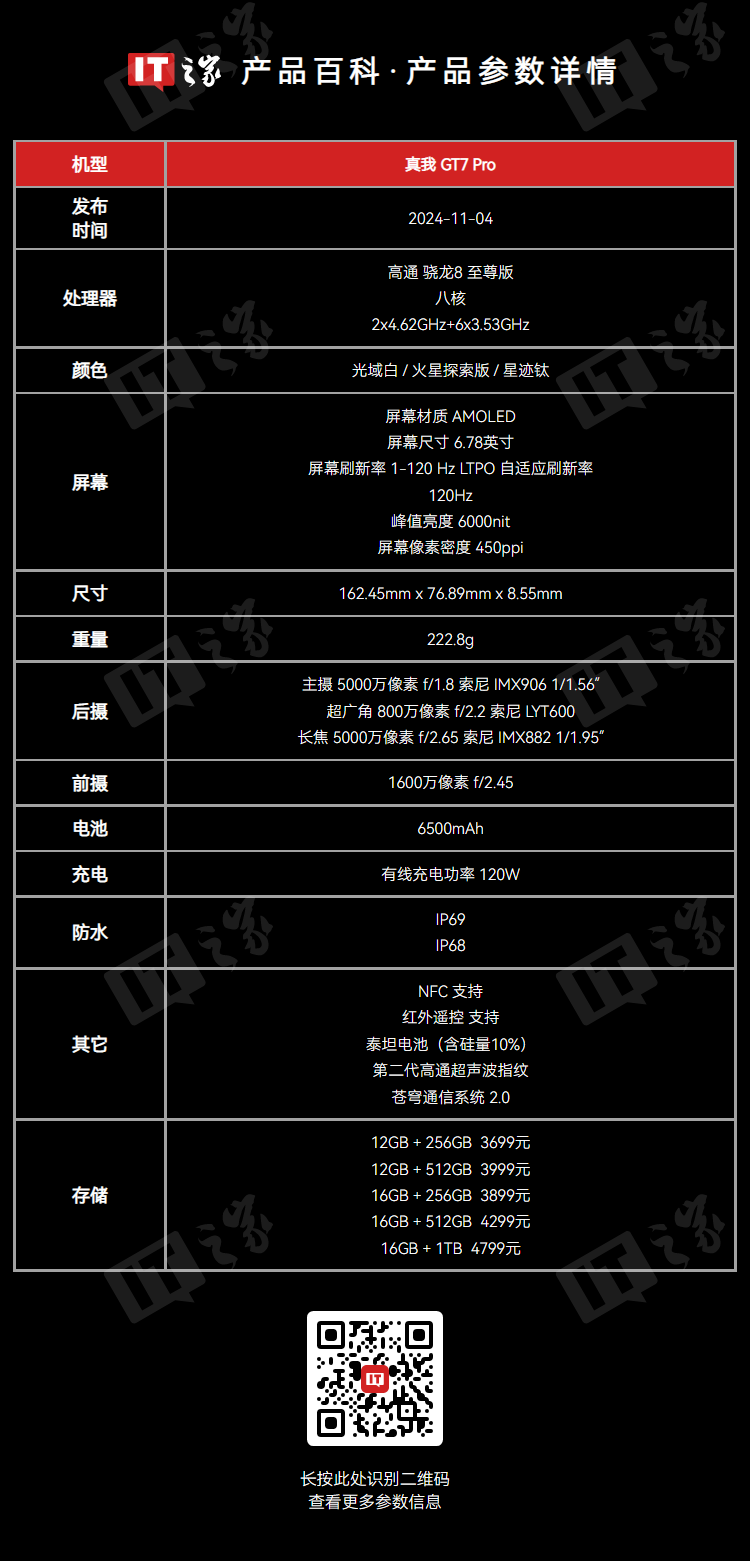 IT之家附国行版真我 GT7 Pro 手机规格如下: