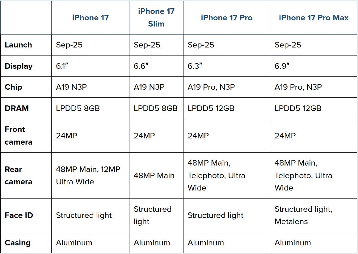另外,iPhone 17系列全系升级2400万像素前摄,全系将支持120Hz ProMotion高刷显示。