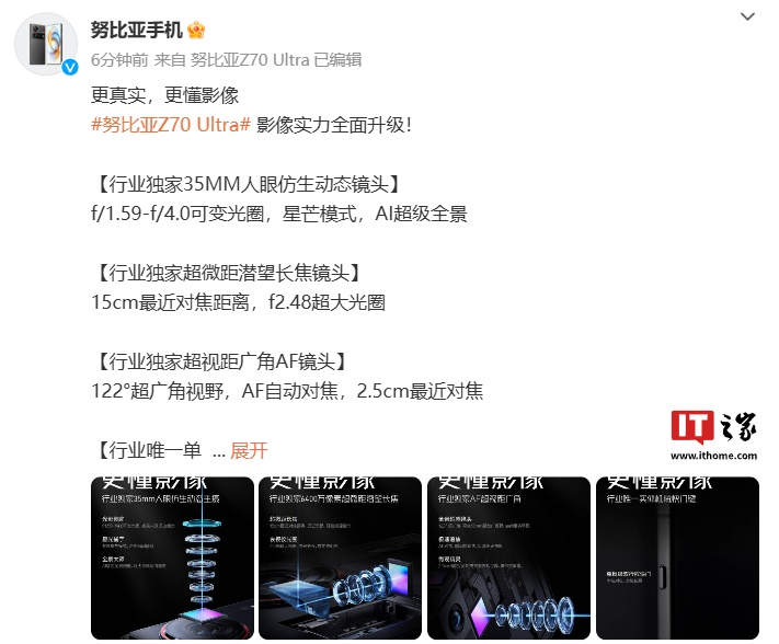 IT之家整理努比亚 Z70 Ultra 手机影像配置情况如下: