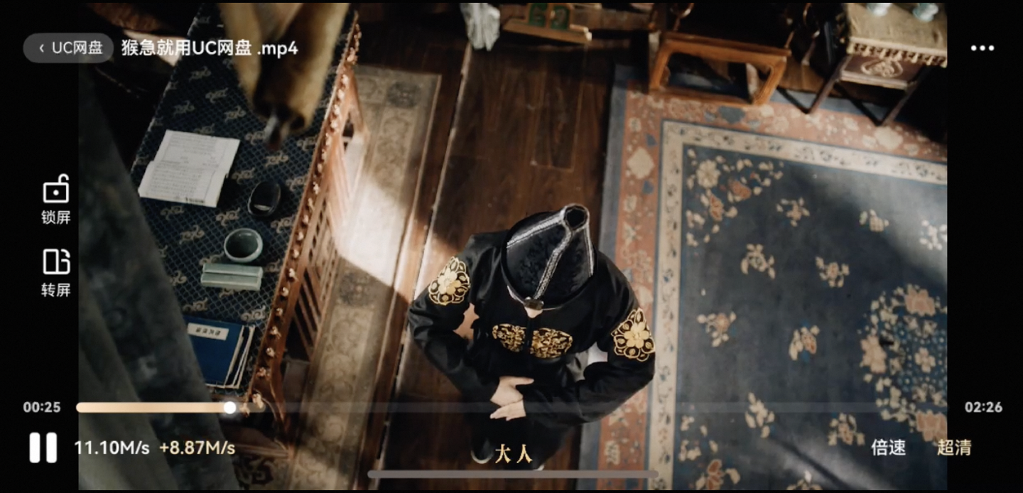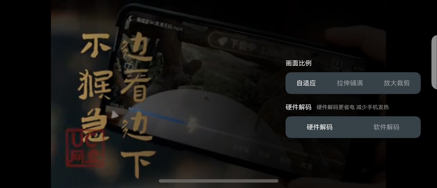 UC 浏览器鸿蒙原生版网盘同样也支持视频播放,目前支持免费的倍速播放、画面拉伸以及横竖屏切换等功能。