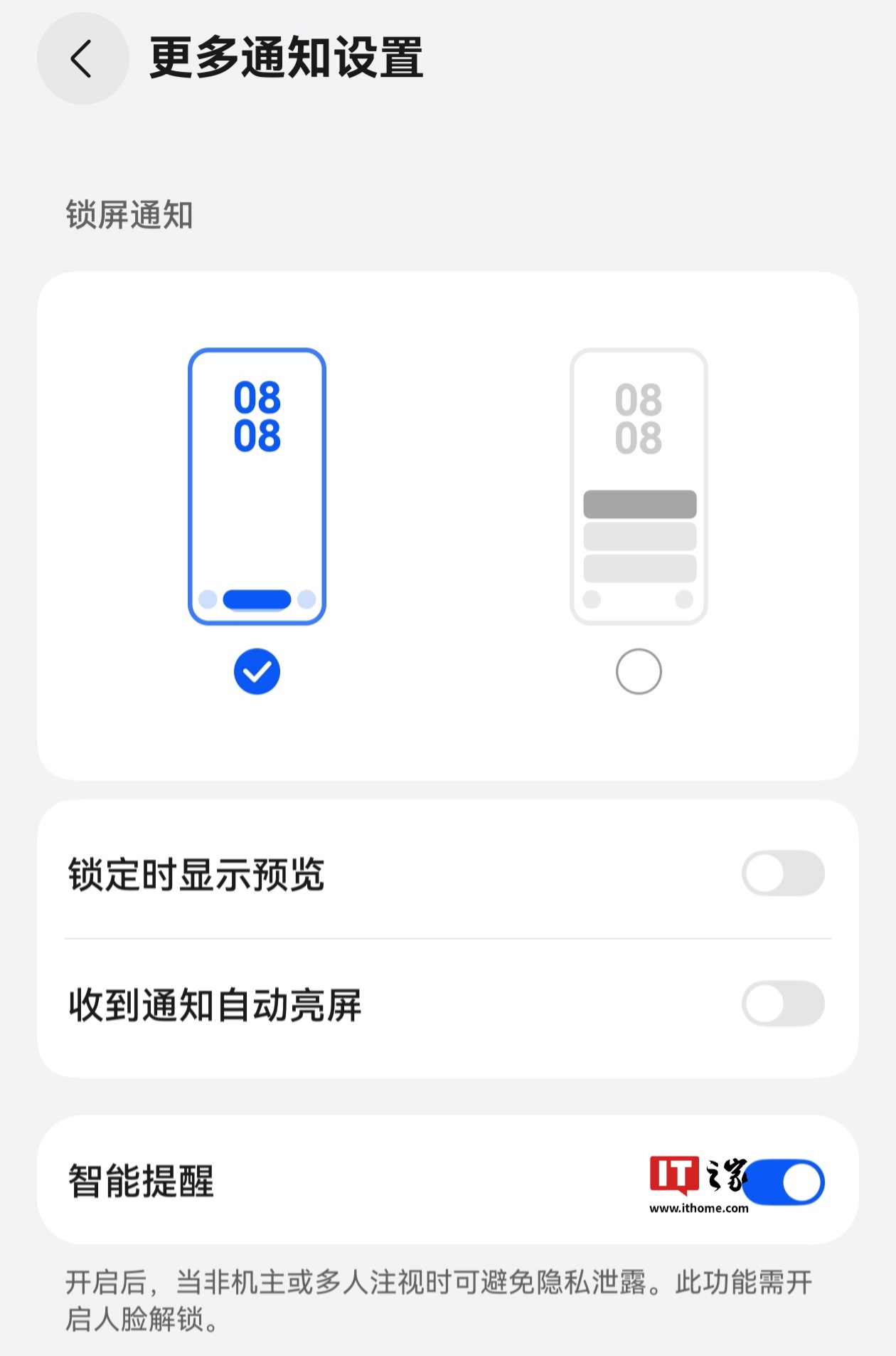 IT之家注意到,目前华为 Mate 60、Pura 70 等系列机型已支持通知智能提醒功能,该功能开启后,当非机主或多人注视时,不仅可以隐藏锁屏通知内容,还可以智能保护横幅通知内容。