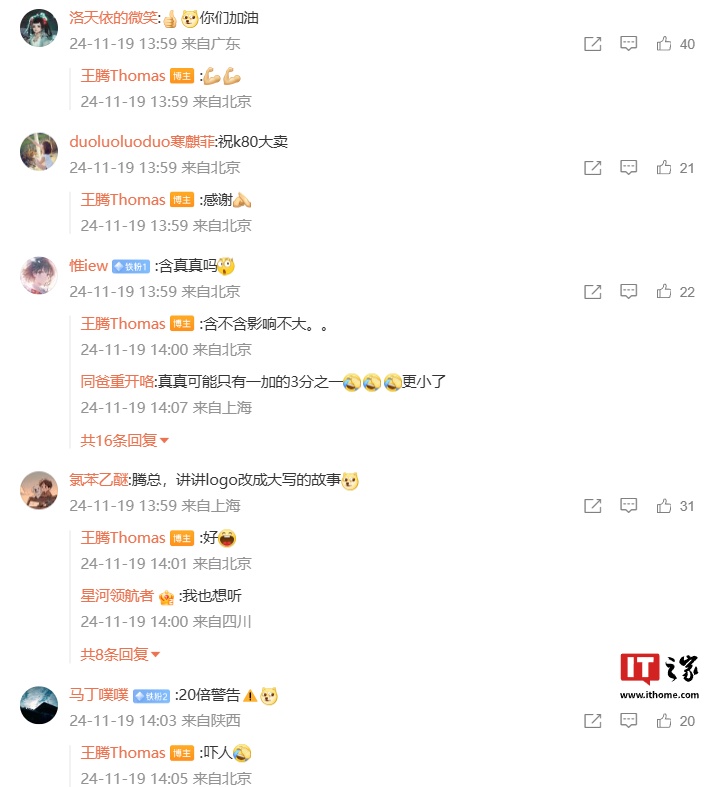 IT之家注意到,王腾还在评论区中回复了部分网友的问题:针对询问份额情况是否包含真我的问题,王腾称“含不含影响不大”。