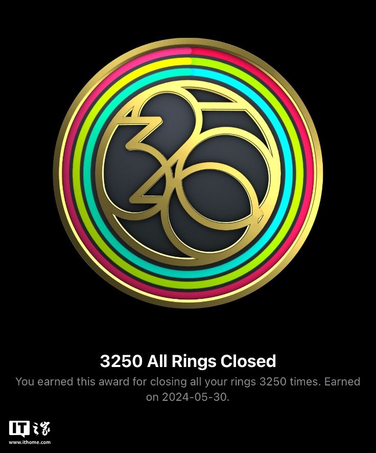 有网友还晒出了自己的“铁粉”标志,实现了 3250 天闭环,而要知道,初代 Apple Watch 自 2015 年 4 月 24 日发布以来,距离到明天(11 月 22 日)刚好 3500 天。