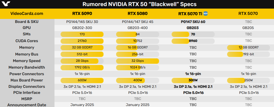 如无意外,RTX 5070 Ti、RTX 5070都将在明年2月份发布。