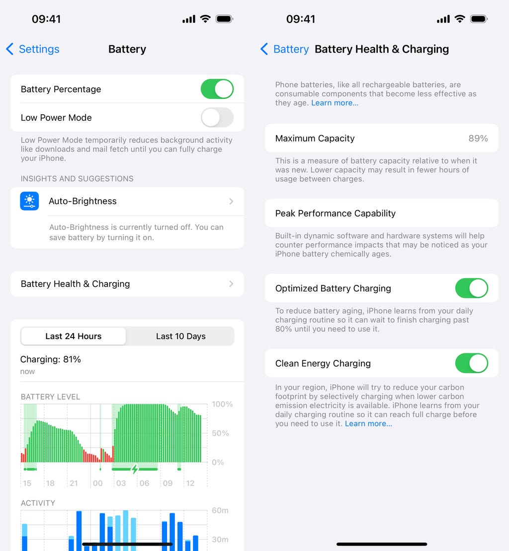 这有助于减少电池老化,虽然默认情况下应该启用此设置,但检查它是否已开启仍然是个好主意。在设置中,转到电池 > 电池健康与充电,并确保优化电池充电已开启。