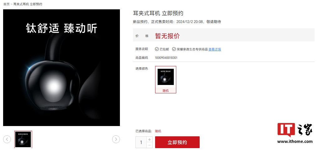目前,荣耀 300 系列新机已开启预热,预计将于近期发布,该款耳夹式耳机新品有望随荣耀 300 系列手机同步亮相。目前这款耳机暂未公布详细参数信息,IT之家后续将保持关注,并在第一时间带来完整报道。