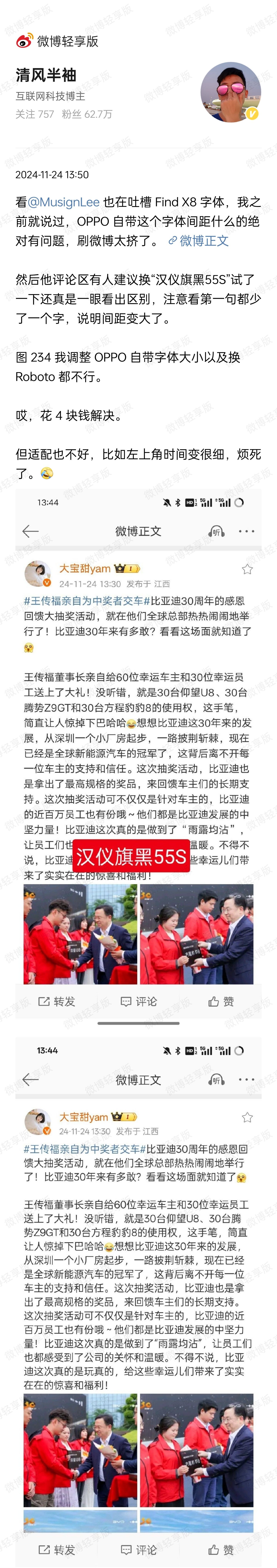 IT之家 11 月 25 日消息,博主 @清风半袖 在微博称,“OPPO 自带这个字体间距什么的绝对有问题,刷微博太挤了。”