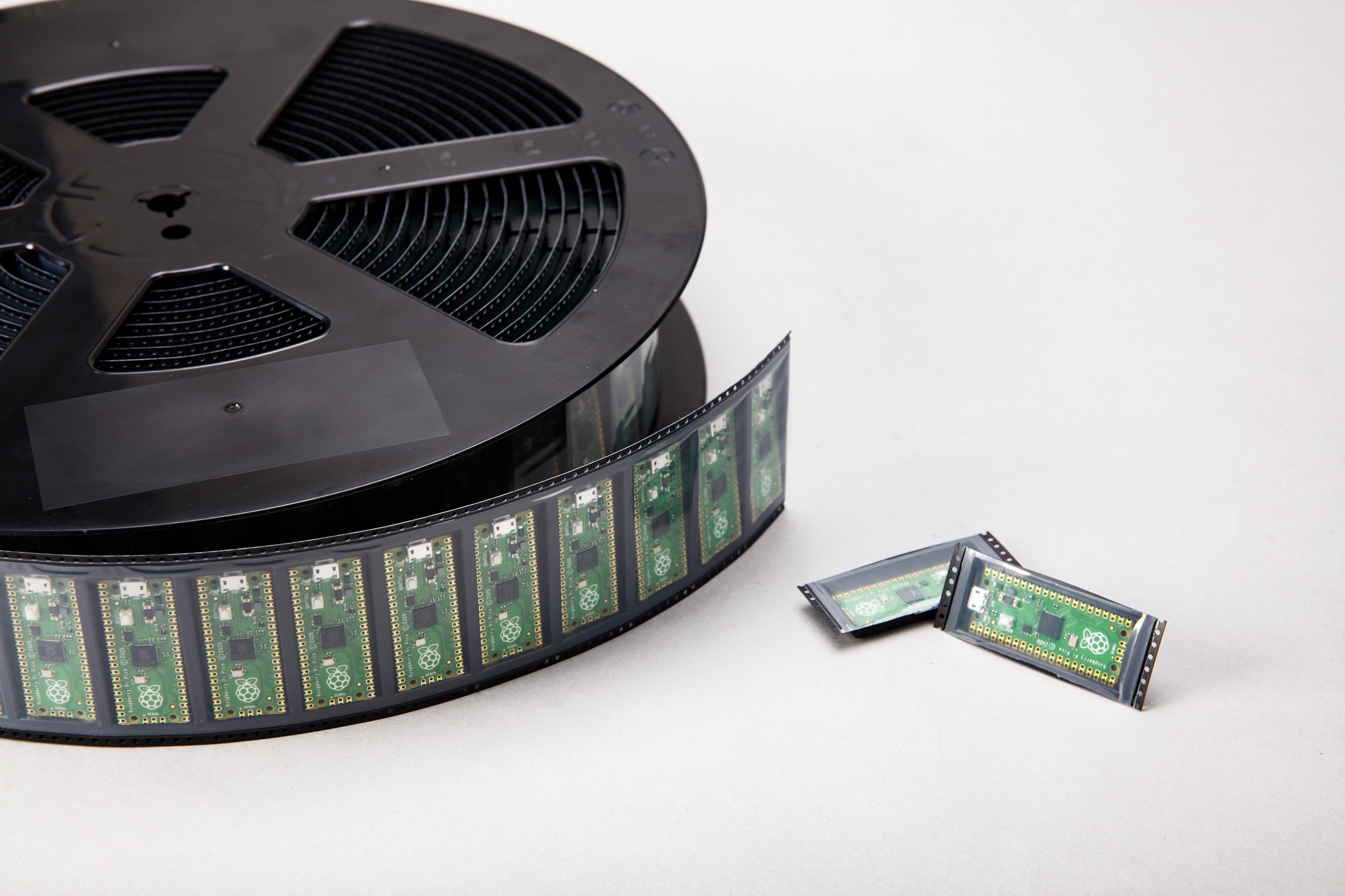这也许就是为什么您可以购买单个单元的 Pico 2 电路板,也可以购买 480 个单元的卷轴。 这就是一卷 Pico 2 微控制器板的样子: