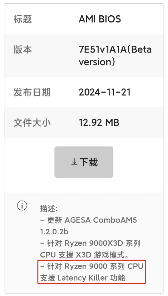 7E51v1A1A Beta 版 BIOS 中引入了该功能,并在该功能打开后主板会对内存延迟进行进步优化,并提升其内存延迟表现。