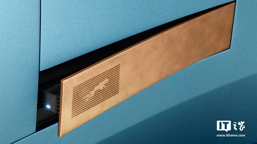在最新预告图中,捷豹展示了这款全新电动四门 GT 概念车车身某处的长方形装饰板,表面融入了全新的捷豹品牌标识。该装饰板具备弹出功能,内部隐藏了一块黑色长方体电子配件。由于装饰板打开角度较小,大概率不会是隐藏式门把手。