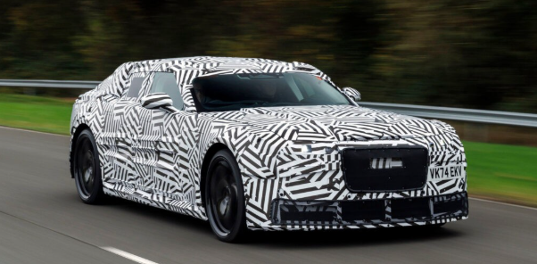 除了预告图,海外媒体还曝光了捷豹全新纯电动原型车的测试谍照。从谍照来看,该车采用了四门 GT 轿跑车的车身结构,前脸拥有大尺寸的进气格栅以及贯穿式进气口。车身侧面则设计有大尺寸黑色轮辋和隐藏式门把手,而充电口则位于车身右前翼子板处。
