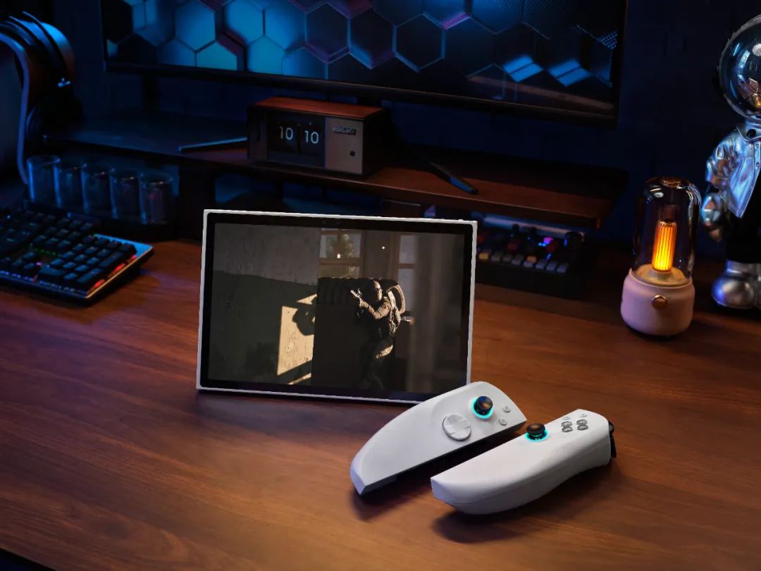 该掌机配备了一块 11 英寸 2.5K 分辨率的 120Hz 高刷屏幕,搭载实时人眼追踪传感器,采用 TN 液晶光栅技术,基于实时图像交织算法,无需任何辅助设备即可智能生成裸眼 3D 视效画面。