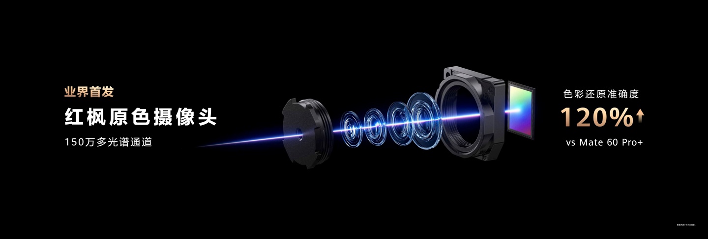 据介绍,该机搭载 150 万多光谱通道,色准还原准确度提升 120%,且红枫原色摄像头“图像级”的光谱信息捕获能力,真正实现影像色彩质的飞跃。