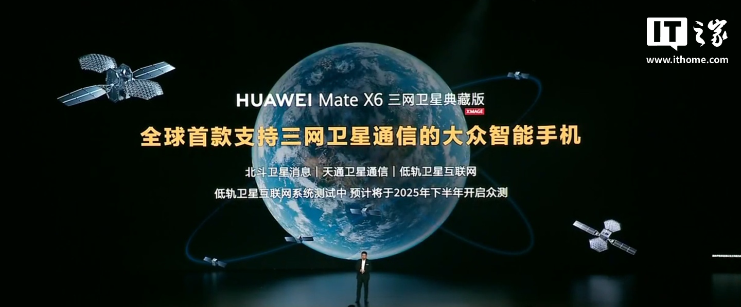 IT之家从发布会获悉,华为 Mate X6 三网卫星典藏版除了北斗卫星消息、天通卫星通信,还将支持低轨卫星互联网。